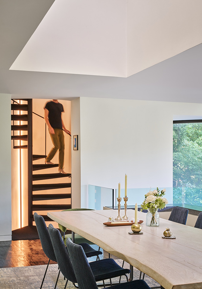 Throughout, restored transparency, layered decks, and vertical connections celebrate the home’s original design intent—creating a luminous, dynamic environment deeply attuned to its ravine setting.